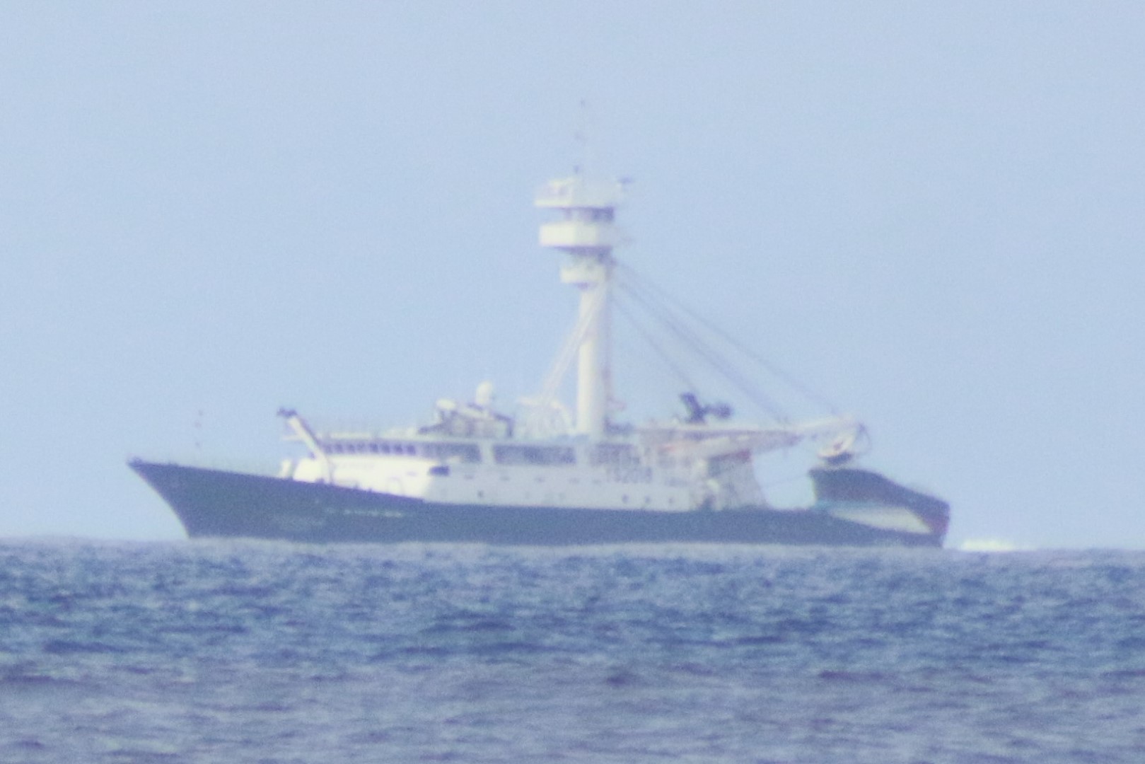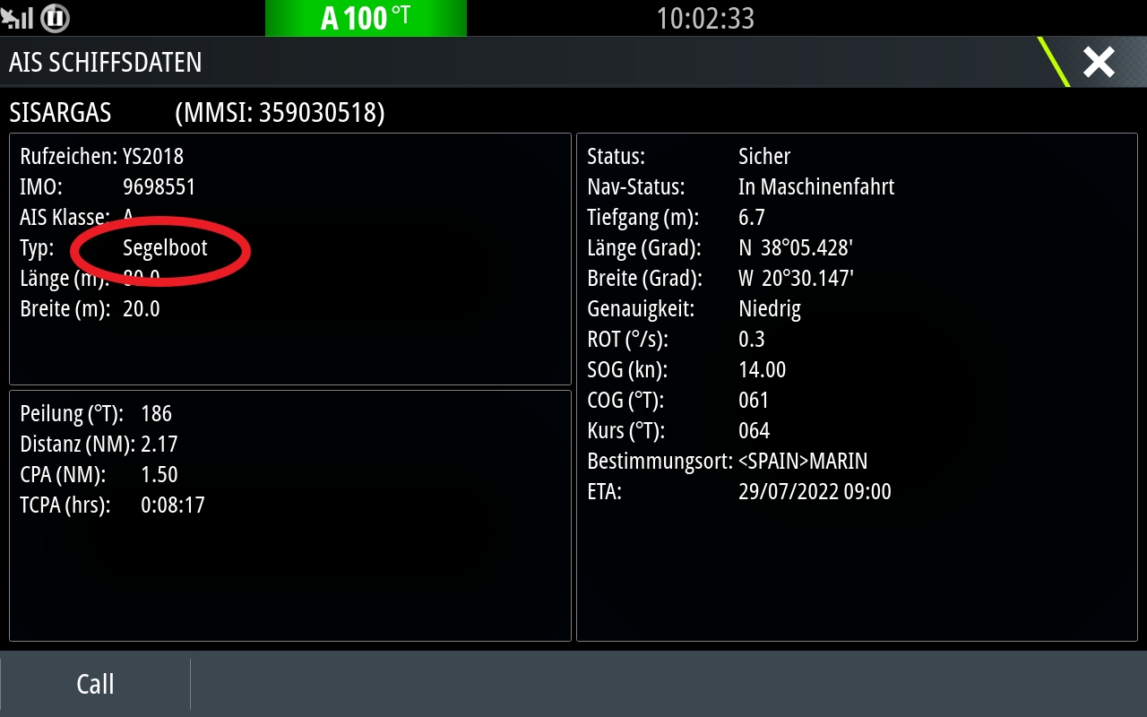 Am Vormittag überholt uns ein „Segelschiff“. Die SISARGAS. Anhand der MMSI und des Rufzeichens können wir sagen: El Salvador! Und es ist eindeutig KEIN Segelschiff, wie im AIS angegeben. Eher sieht es nach einem modernen Walfänger aus. Der Ausguck, das Gestell auf dem Vorschiff, die Rampe hinten, die jetzt mit einem Phram belegt ist….