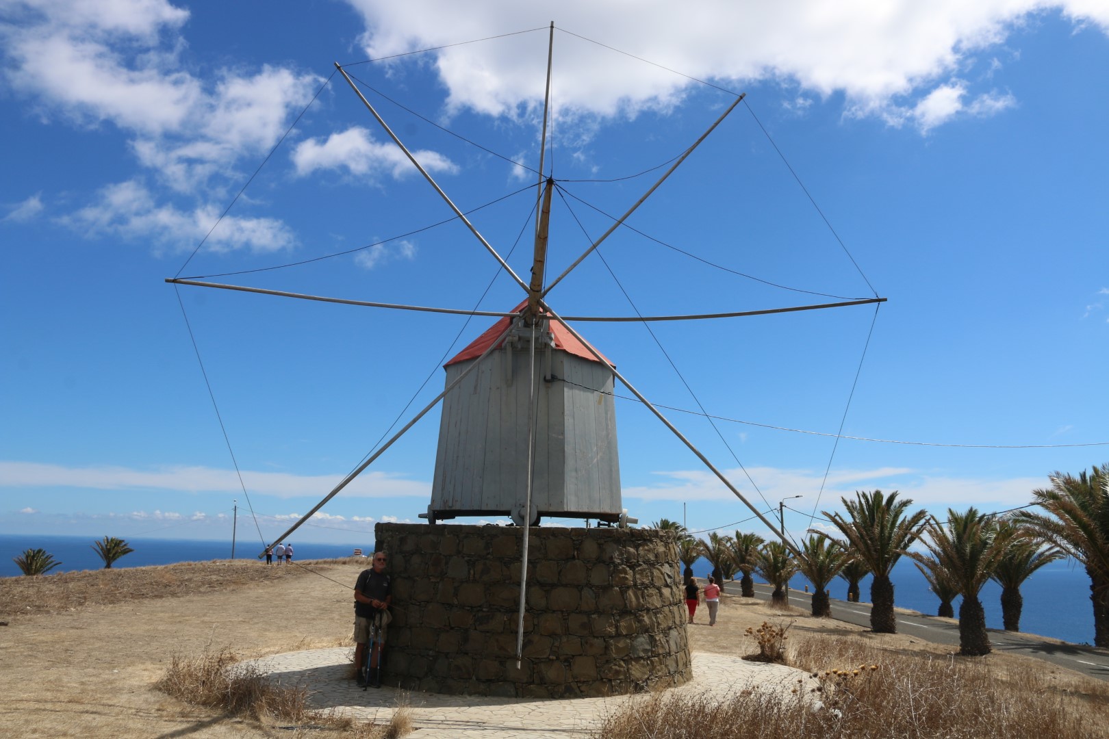 Am Wegesrand wächst etwas aus einem Garten. Sieht so ein wenig wie grüne Tomaten aus. Wir rätseln. Da klackert es auf der anderen Straßenseite. Eine fast drei Meter hohe Mauer wird von einem hohen Maschendrahtzaun überragt, dahinter ein hutzeliges Männchen. Er portugiesisch, Michèle spanisch: Sie kommen nicht ganz übereinander. Aber ich halte die „Tomate“ etwas hin und er lacht: Maracuja!! Also – das konnten wir verstehen. Und wir stimmen überein: Irgendwie hat es für uns so geklungen, als würde er uns auffordern, die doch zu pflücken. Aber reif ist sie sicher nicht und so lassen wir das. Aber – so nett ist das sehr oft mit den Portugiesen. Nix da mit „eh – Finger weg!“.