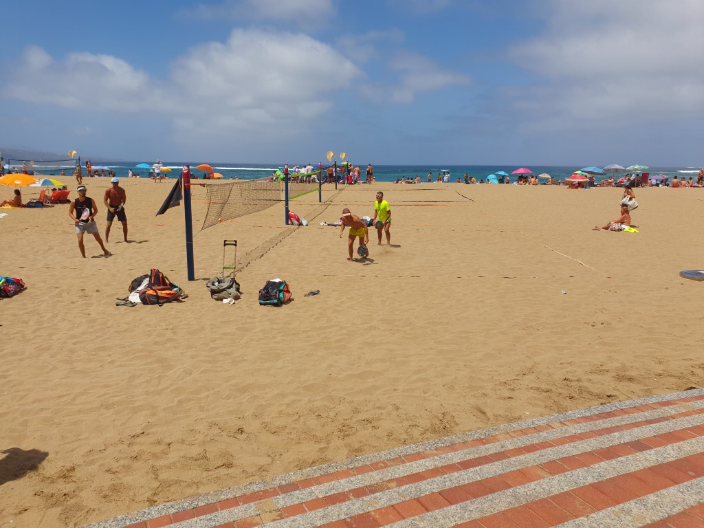 Auf dem Rückweg entdecken wir einen freien Tisch – setzen und und und wollen was trinken. Schauen dort den Volleyballern zu. Nach einer halben Stunde war die Bedienung immer noch nicht da – und wir gehen weiter…