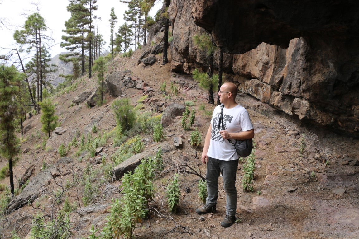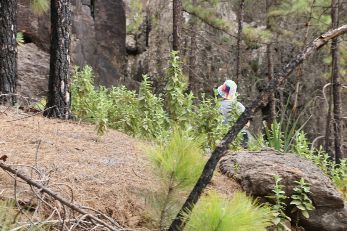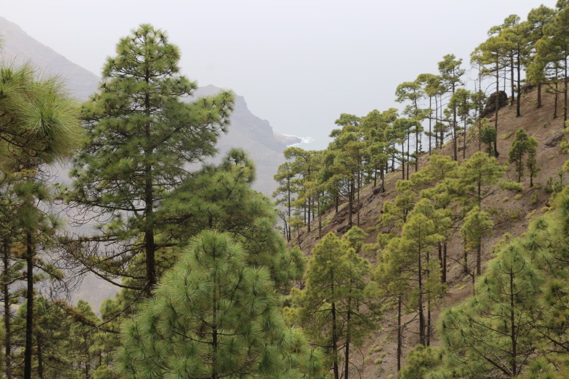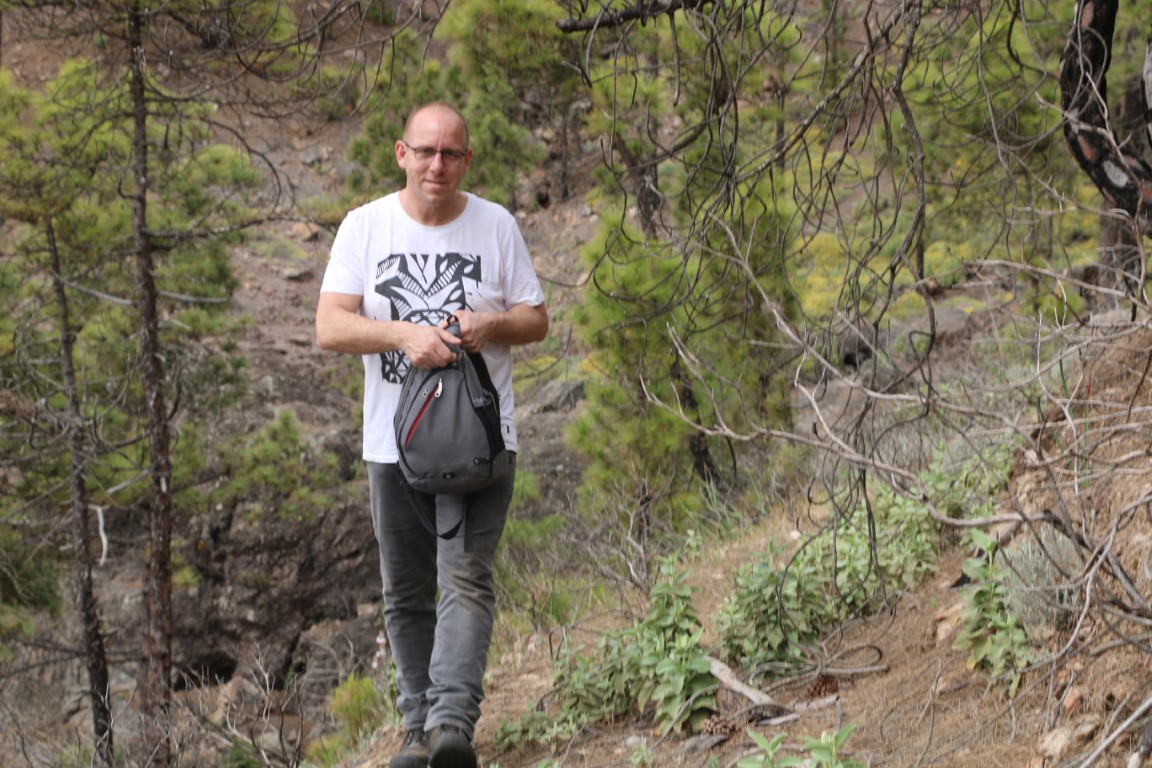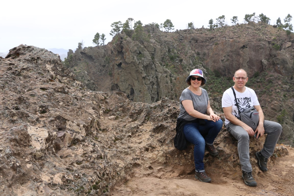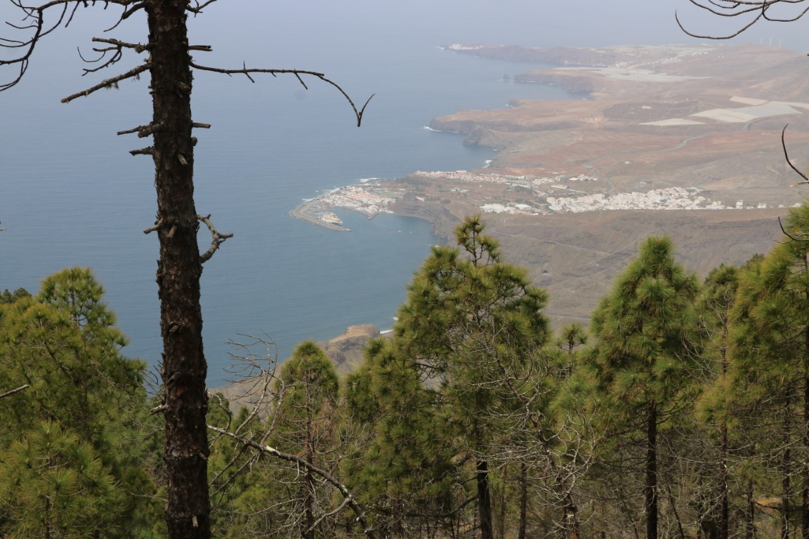 Die Wanderung führt zunächst einmal abwärts. Nun – da weiß man dann, was die zweite Hälfte des Rundkurses zu bieten hat! Erster Zwischenstopp auf einem Aussichtspunkt mit Blick über den Atlantik und Agatea. Und dann: Weiter abwärts. Der Weg ist als mittelschwer klassifiziert, heißt, dass man stets hinschauen muss, wo man hintritt. Um „die Gegend“ zu genießen muss man stehen bleiben. Irgendwann wird die Crew quengelig. „Wann sind wir unten?“ Und dann tritt sie in Streik. Ich gehe noch bis zum tiefsten Punkt der Strecke, aber da die Crew sitzen geblieben ist, muss ich zurück. Und dann drehen wir um, noch mehr Höhenmeter wollen sie nicht machen. Ohne den Schlenker zum Aussichtspunkt geht es dann zum Wagen zurück. Allgemeine Zufriedenheit sieht anders aus, aber ich finde, wir haben wieder mal ein interessantes Stück Gran Canaria kennen gelernt.