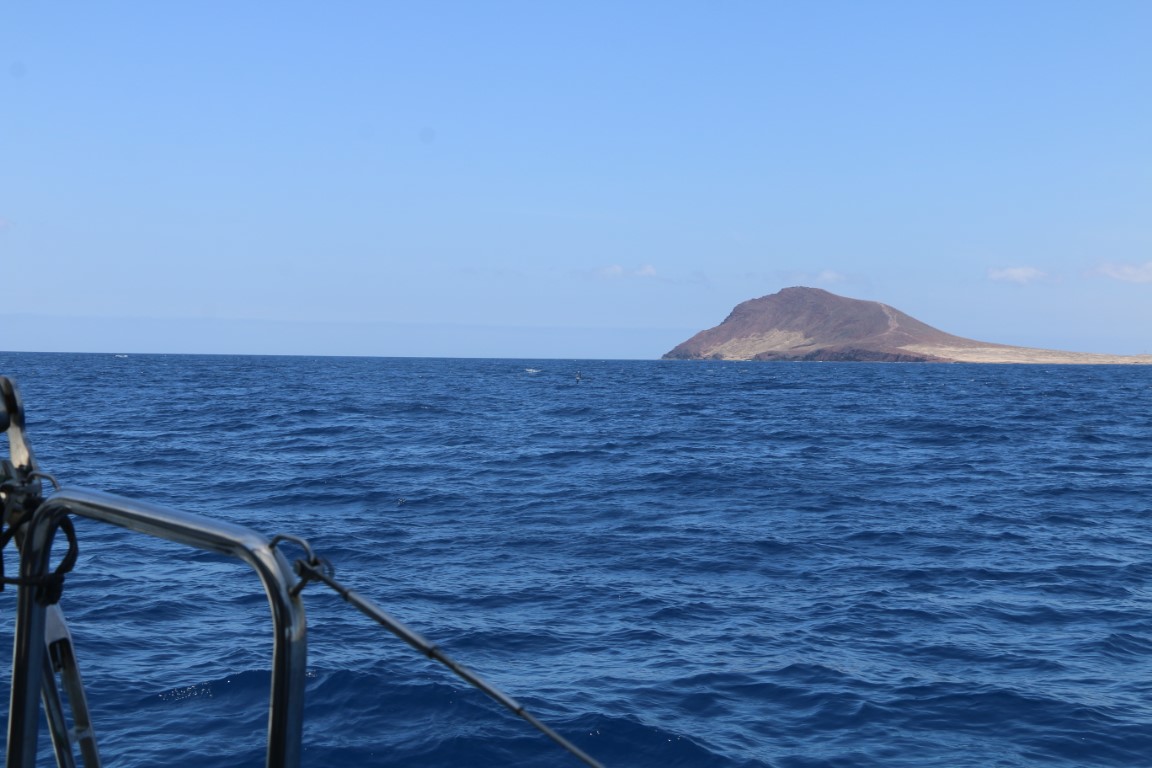 Bald nach 15.00 Uhr stehen wir vor unserem heutigen Ziel. Segel runter, unter Motor untersuchen wir eine ruhige Bucht. Sie ist mir aber unangenehm. Die Wassertiefen in der Karte und vor Ort stimmen nicht überein. Der Wind steht auflandig. Nein – das mag ich nicht. Also lieber zurück in die Bucht von Las Galletas direkt vorm Hafen. Da liegen zwar ne Menge Schiffchen, aber wir entdecken, dass das Dauerlieger vor Anker und Mooring sind. Die schwojen also nicht herum. Da legen wir uns in die äußerste Position. Nicht ganz so ruhig, was das Schaukeln angeht. Aber gut erträglich. Michèle geht schnorcheln, kommt aber mit der Meldung zurück: Absolut uninteressant!