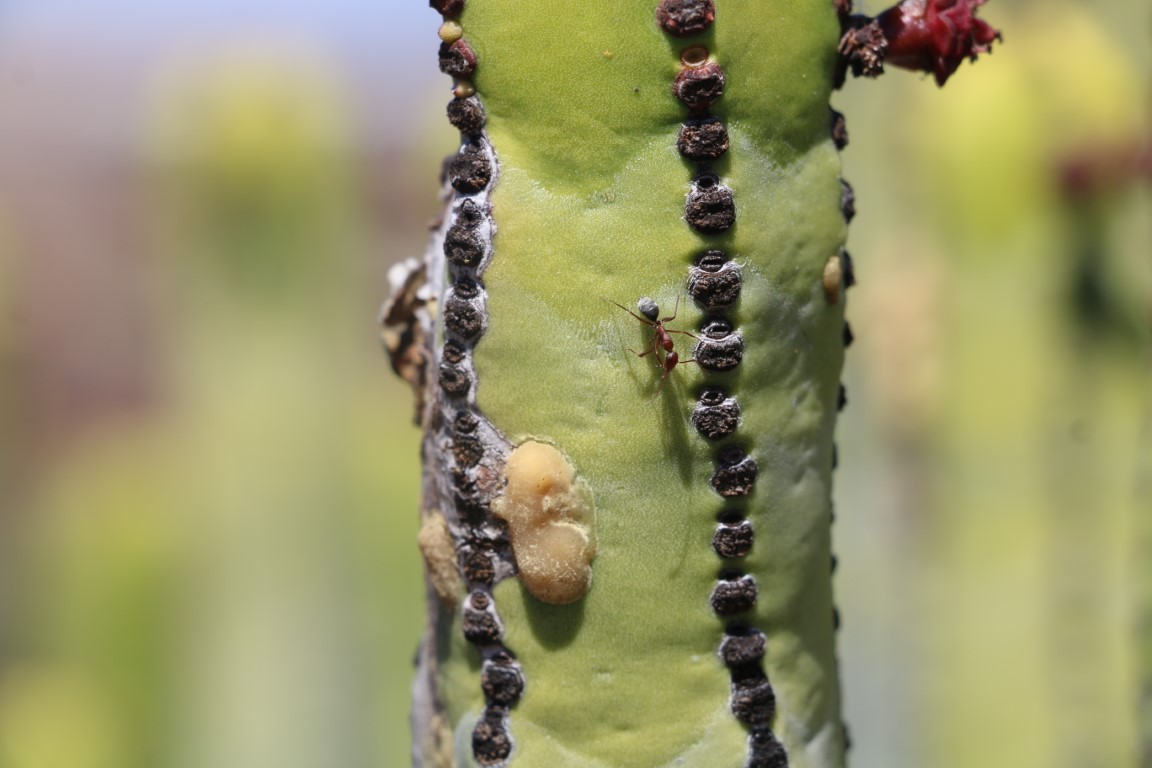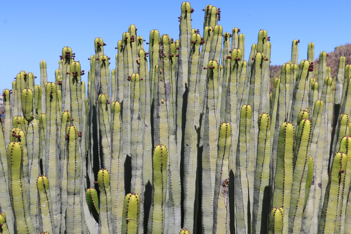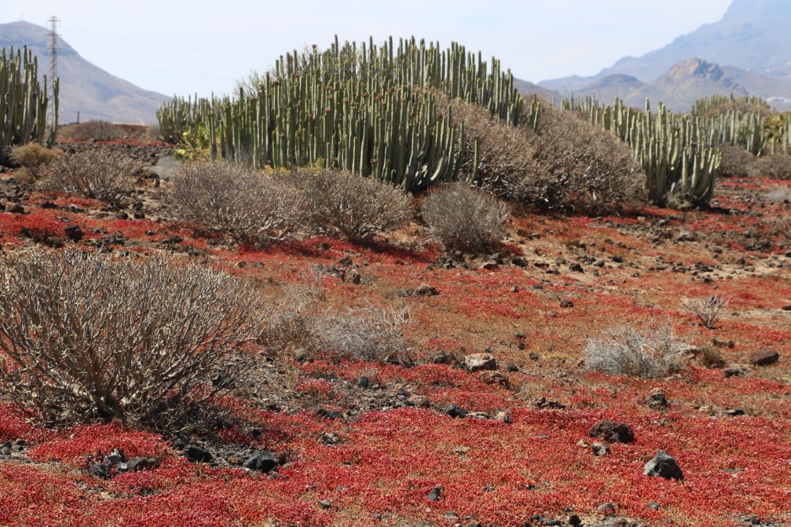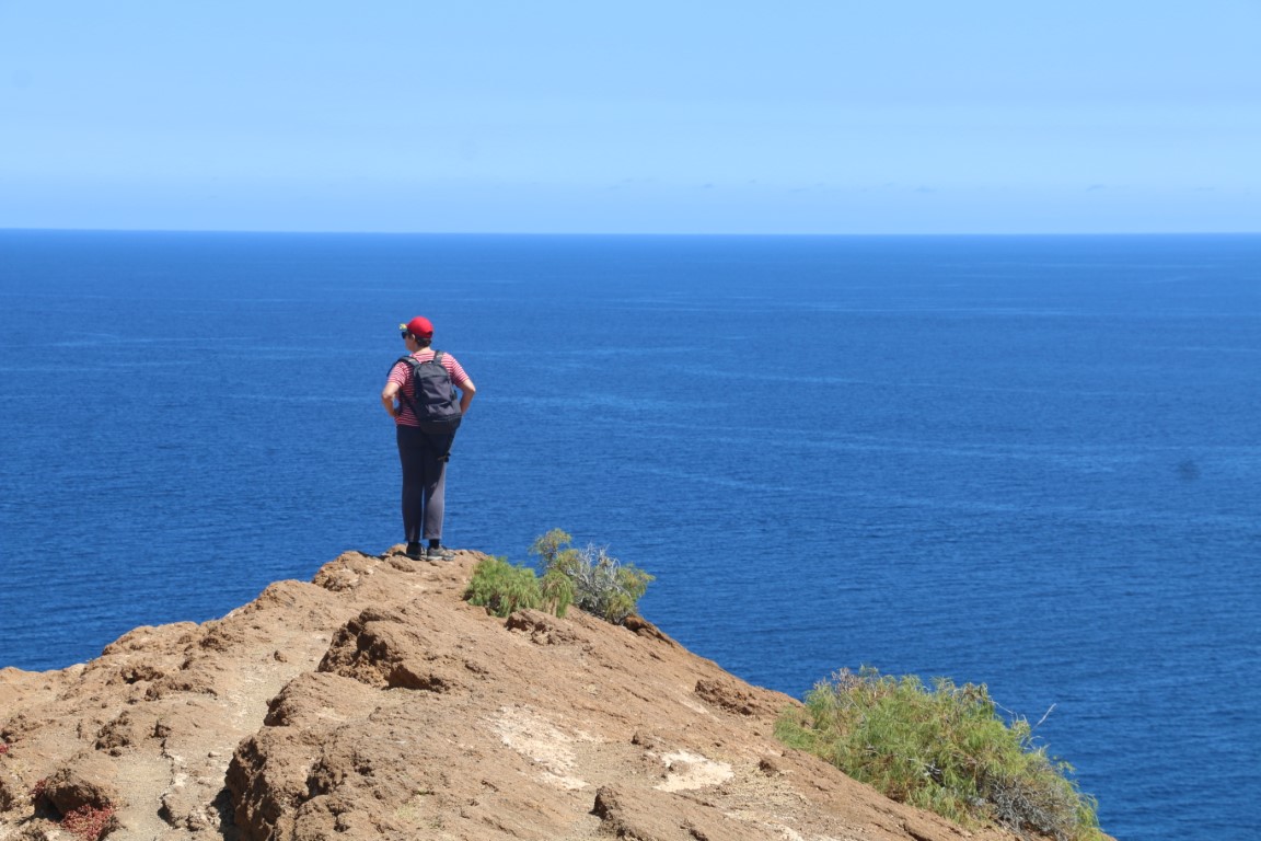 Den Nachmittag verbringen wir mit einer kleinen Wanderung. Nette Aussicht nach Norden nach San Miguel mit der Amarilla Marina. Da hatten wir im Oktober Ulrike und Thomas abgeholt. Das Monumento Natural ist nett, aber Monumento?? Wir erfreuen uns auf der „Bergspitze“ des kühlenden Windes und der ruhigen Natur: Kein anderer Wanderer unterwegs! Bis dann nach einem Fotostopp es plötzlich hinter uns patscht. Quasi aus dem Nichts taucht ein Jogger auf. Entsetzt springen wir zur Seite und machen ihm Platz. Den haben wir nicht kommen gesehen und auch nicht gehört. Und dann war er auch schon auf 2, 3 Meter ran!
