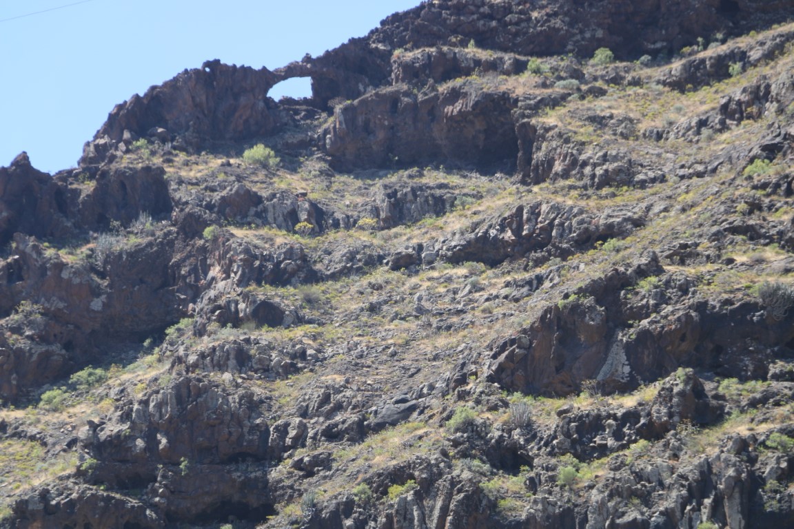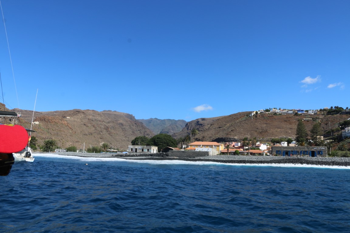 Anna von der SANCARA hatte die App Komoot bei mir eingeführt. Und die wird oft, um nicht zu sagen ständig für Wanderungen benutzt. Und für Playa Santiago hat Komoot eine Schluchtenwanderung vorgeschlagen. Da ich die Hitze des Tages befürchte, schlage ich frühen Start vor. Es wird dann doch nach 10:00 Uhr, bis wir loskommen. Übersetzen in den Hafen – Müll nicht vergessen! Und dann los: Den ersten Teil kennen wir schon. Dann geht es in die Schlucht. Auf einem Teerweg. Das ist super. Man braucht nicht aufzupassen, was die Füße machen, sondern kann das Panorama genießen. Nun – wie befürchtet: Es wird warm. Auf Teer in praller Sonne… So nutzen wir jeden Schatten aus. Und machen manchen Stopp. Natürlich nur, um das Panorama zu genießen und Fotos zu machen…