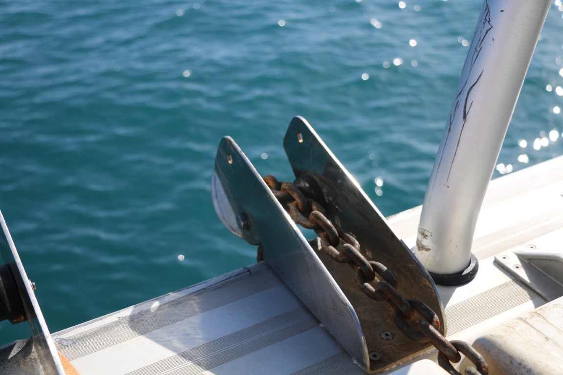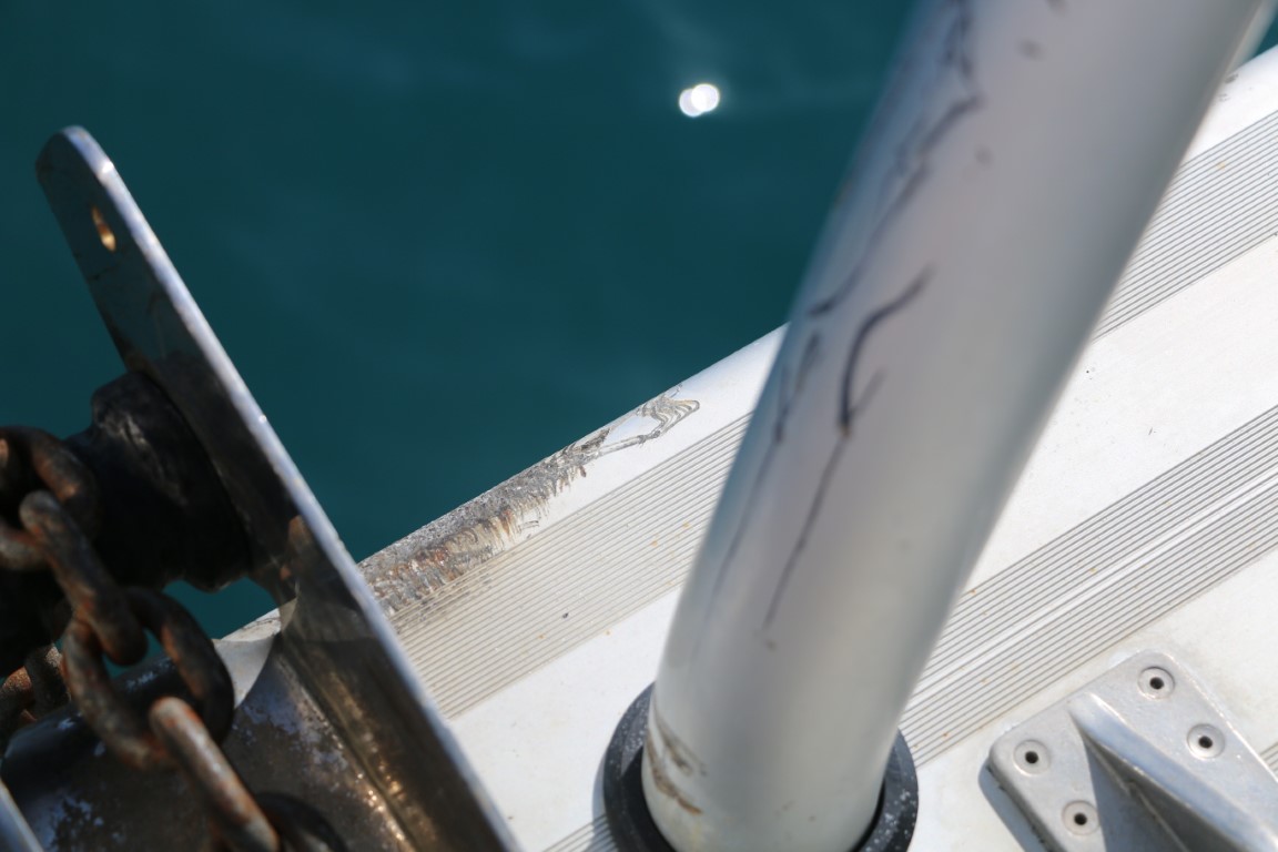 - RE bekommt einen Verhinderer, dass die Kette aus der Führung springen kann. (Nachtrag: Das wird eine Metallstange, die durch die beiden schon vorhandenen Löcher in der Führung über der Kette eingeschoben wird. Dann kann die Kette nicht raus, aber noch eingeholt werden. Nur für „Anker an Deck“ müsste die gelöst werden, das ist sicher...)