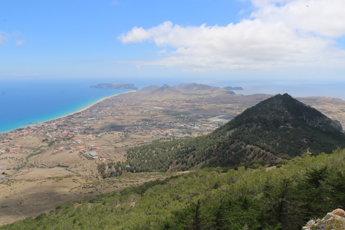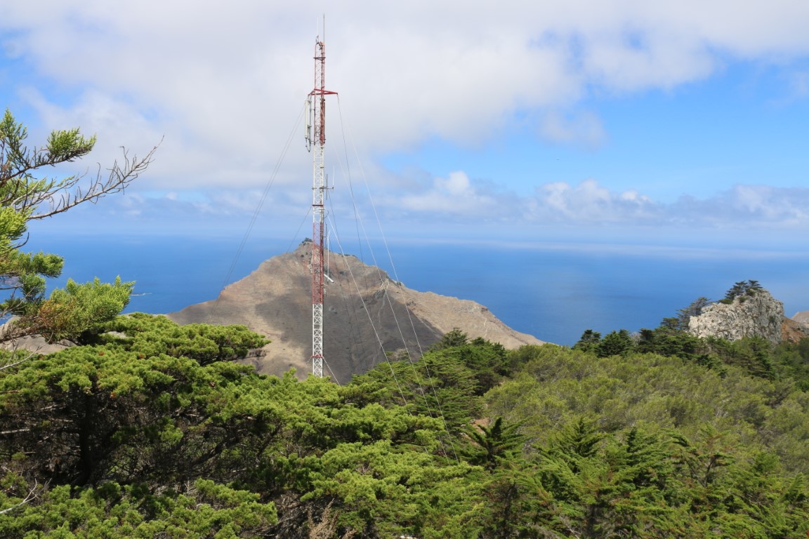 Auf dem Übergang zum Pico Facho finden wir dann einen tollen Weg. Gut für Autos. Das geht wohl hoch zur Radarstation. Den nehmen wir! Und kurz vor dem Gipfel geht es rechts ab in einen schmalen Bergpfad. Das muss zum Gipfel gehen. Am Ende dieses Weges finden wir die Funkstation. Den Mast konnte man schon lange über den Bäumen sehen. Dahinter geht es dann richtig steil weiter. Michèle lässt das lieber bleiben. Ich klettere die paar Meter hoch und stehe dann auf dem höchsten Punkt. Viel Standfläche hab ich nicht. Und so wird der Versuch ein Rundschwenk zu filmen recht wackelig….