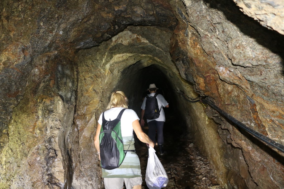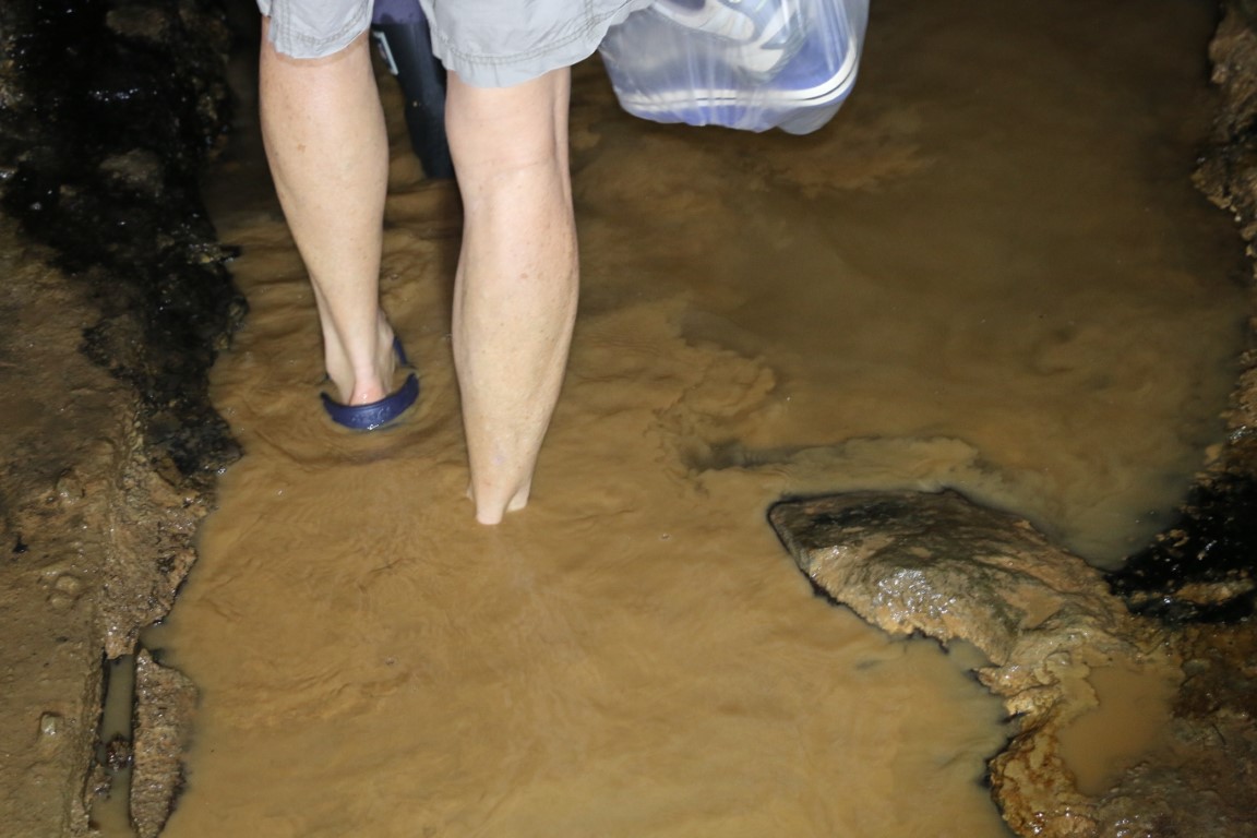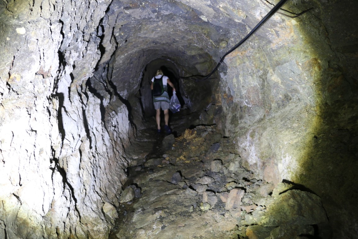 Der Tunnel ist größtenteils mehr als 1,80 m hoch, der Boden natürliche Steine. Dazwischen immer wieder langsam fließendes Wasser. Die letzten 50 Meter dann ca. 5 cm hoch Schlamm. Darunter aber der feste Stein. Die Sache mit den Gummistiefeln war gut.