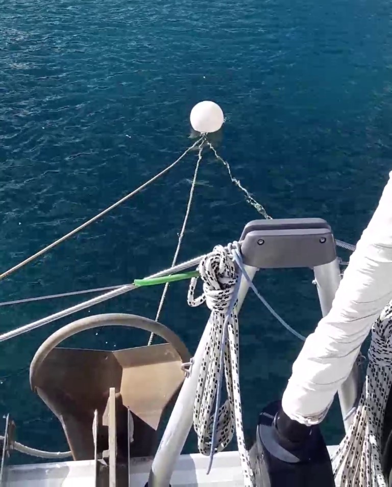 An einem ruhigeren Tag habe ich das Ganze mal in einem Filmchen festgehalten. Heute ist es auf dem Vorschiff eher unangenehm. Durch das Hin- und Herschießen pfeift der Wind auch manchmal auf unsere – ansonsten doch vor Anker so windgeschützte – „Terrasse“.