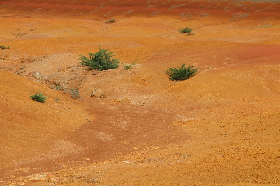 Die „Rote Wüste“ erinnert mich an Namibia. In klein, sehr, sehr klein. Aber nett. Ich stapfe den südlichen und östlichen Schenkel der „Wüste“ entlang – und denke endlich mal auch daran, Fotos zu machen…