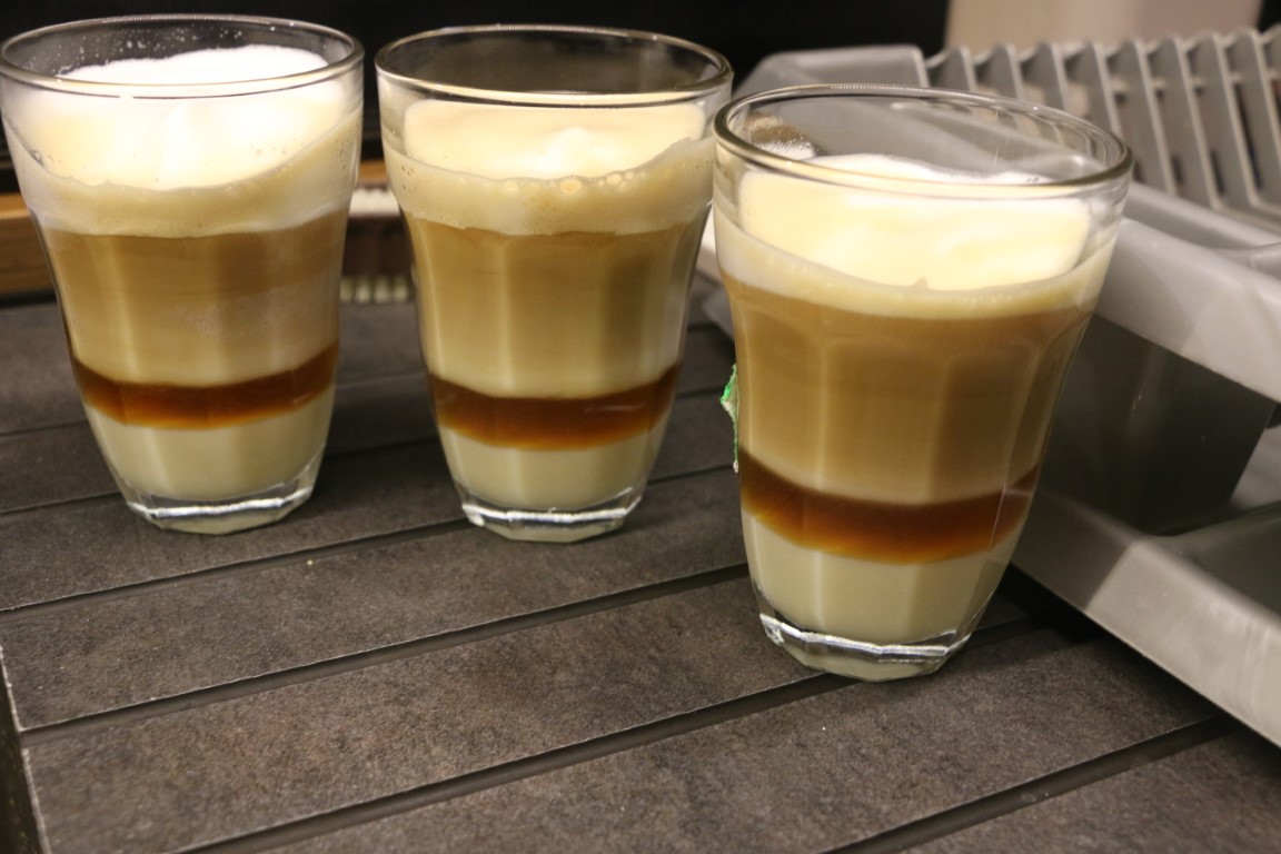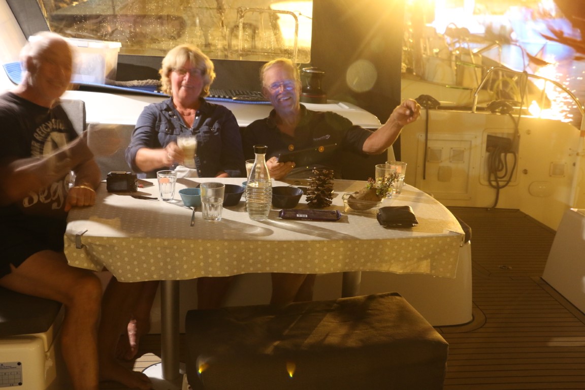 Zurück an Bord beginne ich mit den Vorbereitungen für einen Sun-Downer! Ich habe die beiden von der Nautitech 40 nebenan eingeladen. Sie Belgierin – Leve = Liebe, er Holländer – Derk. Sie haben in Dänemark gelebt und sind nun auch seit Juli 21 unterwegs. Da gibt es wie immer viel zu schwatzen und es wird ein sehr netter Abend. Nur die Kamera habe ich nicht umgestellt von den Wüstenfotos. So sind die Bilder fast nicht zu gebrauchen. Zum Abschied darf ich einen Barraquito servieren. Er gelingt in der Schichtung noch nicht wirklich gut, aber der Geschmack ist da!
