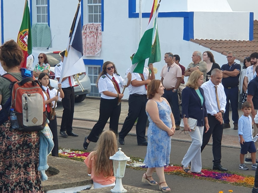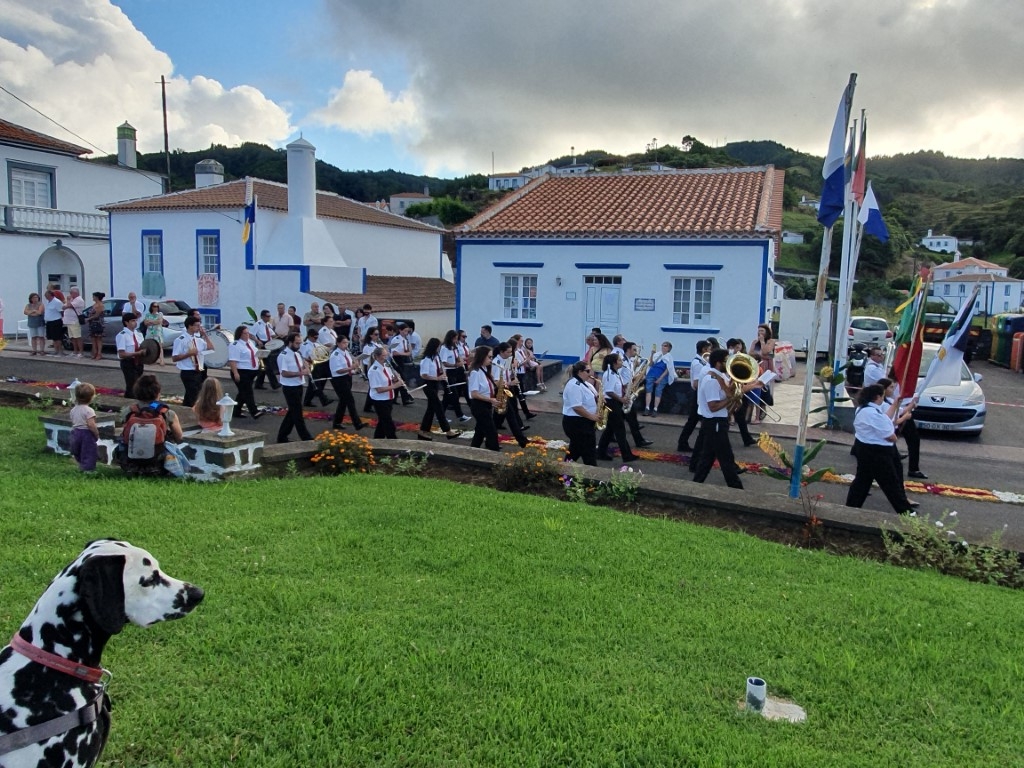 Die Kapelle marschiert mit netten Weisen auf und holt die Prozession ab. Alles, was da so beweglich ist in der Kirche wird „ausgeführt“. Dann kommt der Pope, Frau Bürgermeisterin muss auch mitmarschieren. Und zum Abschluss die Kapelle. Wir lassen das einmal direkt vor der Kirche vorbei defilieren. Dann suchen wir uns eine Bank auf dem langen Weg. Die Prozession geht erst mal einen Berg hoch und kommt dann zurück. Den langen Weg aus dem Städtchen an uns vorbei und dann kommt alles wieder zurück. So haben wir dreimal das Vergnügen. Dann wandern wir hinterher. An der Kirche gibt es noch ein Abschiedslied und alles wird wieder ordentlich gestaut. Natürlich besichtige ich auch schnell noch die Kirche.