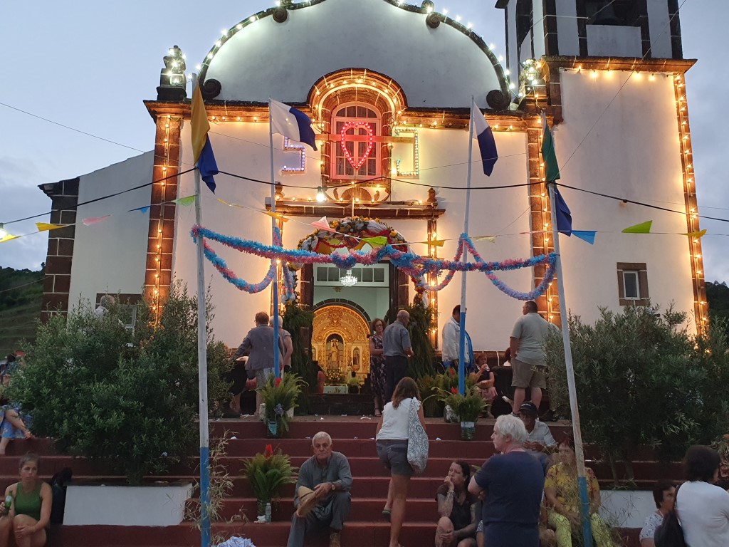 Nach Santa Barbara fahre ich inzwischen ja fast schon „im Schlaf“. Heute ist da großes Kirchenfest. Um 18:30 Uhr beginnt die Prozession. Also 17.00 Uhr Abfahrt. Wird ein wenig später, aber inzwischen weiß ich ja, dass ich die Bergabstrecken nicht bremsen brauche. Und vielleicht kommt auch ein wenig bessere Kondition zum Tragen. So brauche ich heute nur knapp 1:05 Stunden. Ok – die letzten 250 Meter hoch zu H&H spare ich mir, bleibe gleich hinter der Kirche stehen. Da treffen wir uns auch.