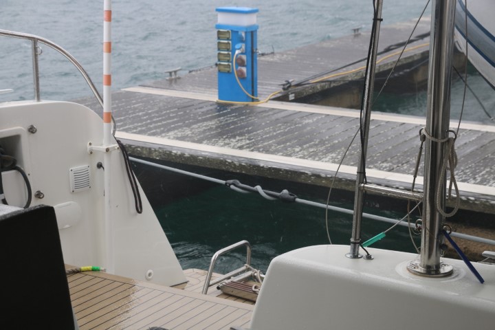 09.: Schon wieder wache ich erst um 10:00 Uhr auf. Das wird ja langsam zur Gewohnheit. Heute stört mich das nicht im Geringsten. Plätschert es doch draußen leise… Oder rauscht es? Es wechselt den Tag über immer wieder zwischen feinem Nieselregen und schweren Regenschauern. So gönne ich mir ein Abendessen in dem Marina-Restaurant.