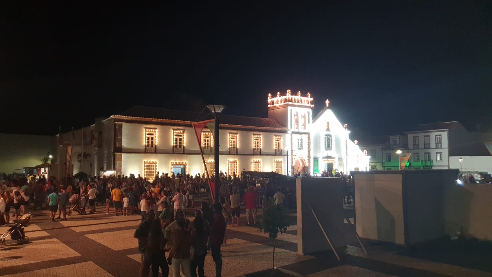 Ronda da Madrugada heißt die Band, die das Musik-Event zum 15. August (Mariä Himmelfahrt) einläutet. Es ist wohl „die“ Band von Santa Maria. Folkrock – und die meisten Zuschauer kennen die meisten Lieder. So wird mitgesungen, Mitklatschen ist auch kein typisch deutsches Verhalten! Um ein großes Festzelt sind Verkaufsbuden. Bier kostet (200 ml) 1,- €. Es ist fröhlich und ausgelassen, Kinder wuseln überall zwischen den Beinen rum, aber betrunken und ausfällig ist niemand. So finde ich das schön.