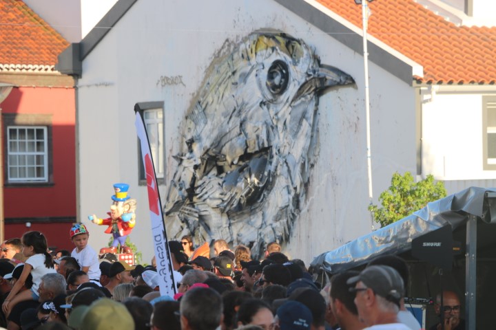 Mit dem Fahrrad zu war dann nett: Nur noch 150 Meter Anstieg, aber 700 Meter abwärts! Mehr als 3 mal so schnell war ich wieder in Vila. Mit viel Durst und total verschwitzt. Durst hat gesiegt: Auf dem großen Festplatz waren die Buden schon geöffnet und ich bekam ein Bier. Und noch eins. Und dann ein riesengroßen Hotdog. Und noch ein Bier. Langsam kam ich wieder unter den Lebenden an. Inzwischen war die Siegerehrung der Ralley angelaufen. Jeder Fahrer wurde stürmisch begrüßt und hielt dann eine Rede ans Volk. Ich verstehe gar nichts. Aber der Erste muss wohl ganz schön rumgeschimpft und vom Leder gezogen haben. Verhaltene Zustimmung. Irgendwann schaffen sie es ihn wieder in sein Auto zu bekommen und dann wird es mit den Nächsten fröhlicher.