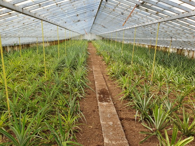 Als letzten Ausflugspunkt haben die Organisatoren sich einen Besuch einer Ananas-Plantage ausgedacht. In Glashäusern mit gekalkten Scheiben wachsen die ca. 50 cm hohen Pflanzen. Der Farmer belehrt uns: In Brasilien in den Tropen können sie zweimal im Jahr ernten, hier alle 2 Jahre. Das Wasser wird von den Dächern aufgesammelt und zeitlich gestreckt zum Gießen genutzt. Damit bekommen sie schön tropische Schwüle hin. Aber der Boden wird ganz schön ausgelaugt. So nehmen sie die Pflanzen einmal im Jahr raus, bearbeiten und tauschen den Boden aus. Und dann kommen die Pflanzen wieder rein.
