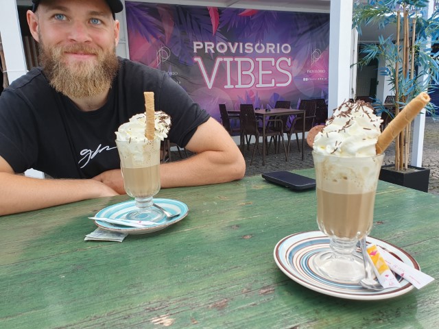 Die Gleitschirme wegbringen und sich aufhübschen für den Abend. Lukas kennt ein Cafe am Hafen, das wunderbare Cappuccino macht. Prima kleiner Zwischenstopp!