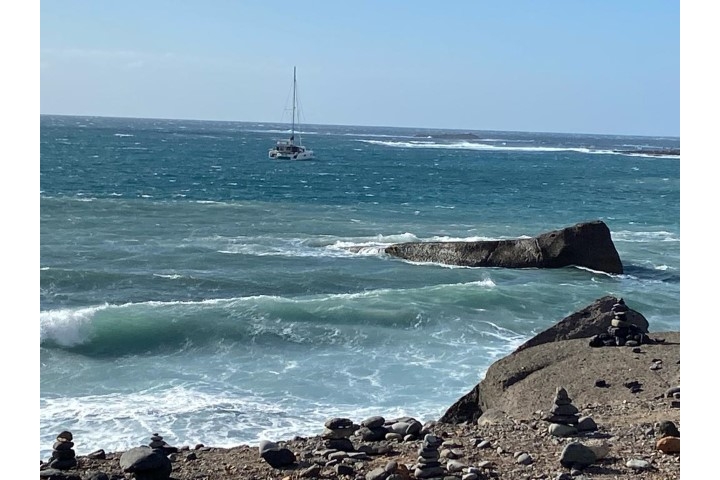 Vor Anker: Vor der Playa de la Enramada, etwas schaukelig.