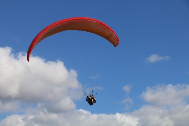 Gundi hatte einmal einen Tandemflug geschenkt bekommen. Und war so begeistert, dass sie das wiederholen wollte. Julia wird „zwangsverpflichtet“, auch einen zu buchen. Und die Beiden sind bereit, mich mitzunehmen, haben alles organisiert: Der Tandem-Veranstalter nimmt mich mit!
