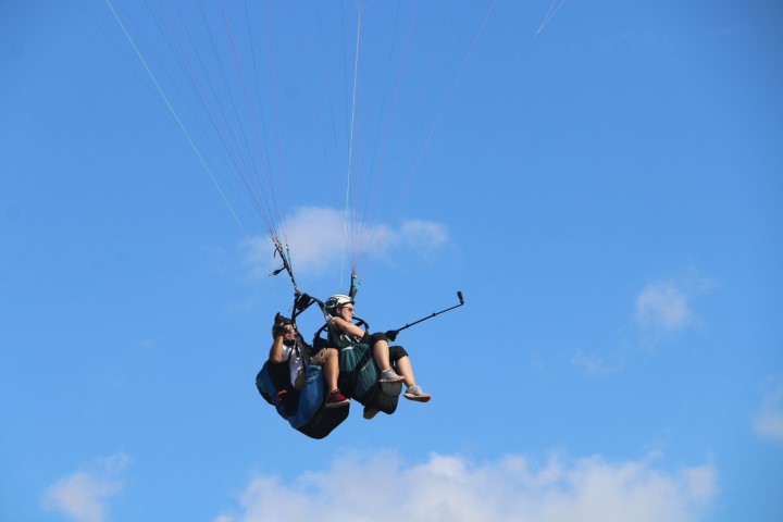 Treffpunkt an einem Supermarkt. Flott geht es aufwärts. Und: Ich kenne den Startplatz. Vor 15 bis 20 Jahren war ich schon mal hier. Die beiden Tandempiloten sind nett, schnell und zack – sind die beiden Mädel in der Luft. Ich komme so schnell gar nicht dazu, ihren Start zu filmen.