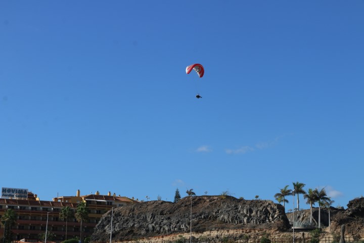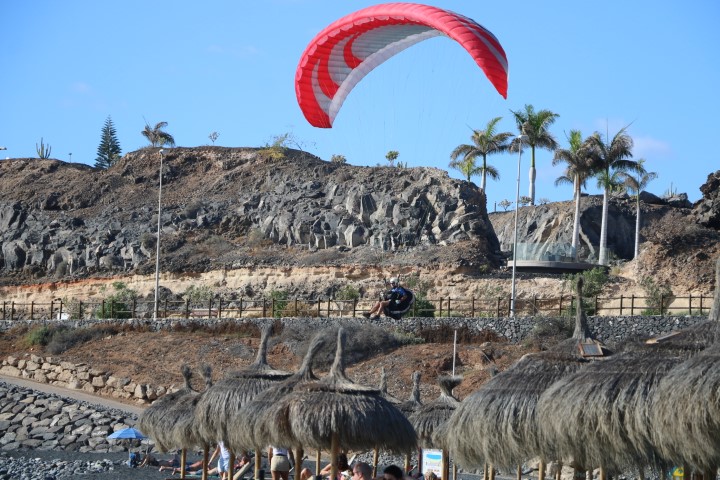 Ich beeile mich, auch in die Luft zu kommen. Herrliche Bedingungen! Ordentliche Thermiken, aber nett gleichmäßig. Für Piloten: 3,6 m/s2 max. Steigen. Dummerweise habe ich meinen Anzug nicht angezogen! Über 1.200 Meter wird es in der Luft dann doch kühl. Deswegen mache ich mich dann auf den Weg zum Ufer. Denn wir landen in Front von RE! Michèle hat sich in die Strandbar gesetzt und macht Landefotos.