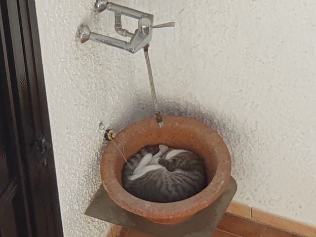 Nachmittags machen wir einen kleinen Landausflug. Also – dass er klein wird, kann ich erst im Nachhinein sagen…. Michèle will die Gigantes hoch. Doch alle „Wege“ sind keine oder gesperrt. Und einfach mal losgehen und schauen, wo und warum sie gesperrt sind, nein! Das machen wir nicht. Wieder runter in den Ort, den Strand besichtigen. Da kommen gerade ordentliche Brecher rein und der Lifeguard trillert wie panisch mit seiner Pfeife. Ok – die Leute im Wasser merken wohl auch, dass es etwas mehr wird und kommen anstandslos raus. Michèle schaut sich in einem der Strand-Shops Kleider an. Ich bummle so rum – und falle über Albert. Die Beiden sind auch hier unten. So groß ist die Welt! Wir sind das erste Mal in dieser Gasse und die „Alberts“ wollen auch den Strand anschauen.