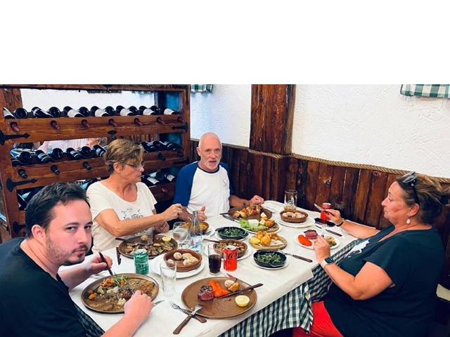 Um 18:20 Uhr sind wir mit „den Alberts“ an der Schranke zum Hafen verabredet. Sie kennen im Inland ein richtiges spanisches Restaurant. Dort gibt es dann Abendessen. Ist wirklich toll: Restaurante Las Goteras. Und mit Albert haben wir dann vollen Fahr-Service. So bringt er uns vollgestopft wieder in die Marina. Danke!