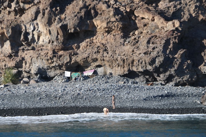 Und ich wollte ein wenig über die „Playa del Medio“ schreiben. Das ist nämlich die (letzte??) Hochburg der Hippies. Alle Höhlen sind hier „belegt“. Tagsüber rennen sie meist nackt am Strand rum. Nachts ist eher elektrisches „Feuer“ zu sehen. Viel Brennbares gibt es hier nicht. Die Inselbewohner sind nicht so froh über diese Bewohnerschaft. Bringen kaum oder kein Geld ein, scheißen in die Gegend und betteln auch mal in der Stadt.