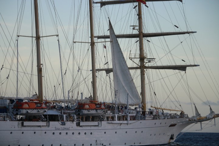 Ein netter Wind weht und so kann ich das neue Segel in der Passat-Stellung austesten. Läuft prima! Und ich denke auch daran, Fotos zu machen. Bei der Einfahrt in die Marina bekomme ich per UKW die Anweisung: Warte noch 5 Minuten im „yellow channel“! Die Stimme kommt mir bekannt vor: Johanna. Kann aber doch nicht sein, die ist doch letzten Sonntag nach D geflogen??? Doch beim nächsten Anruf ist klar: „RE – Chrischan, ich hab hier einen Liegeplatz ganz innen im Hafen.“ Doch Johanna! Und Thomas hat mit ihr klar gemacht, dass wir für ihn bequem zum Ausgang in die Stadt liegen.