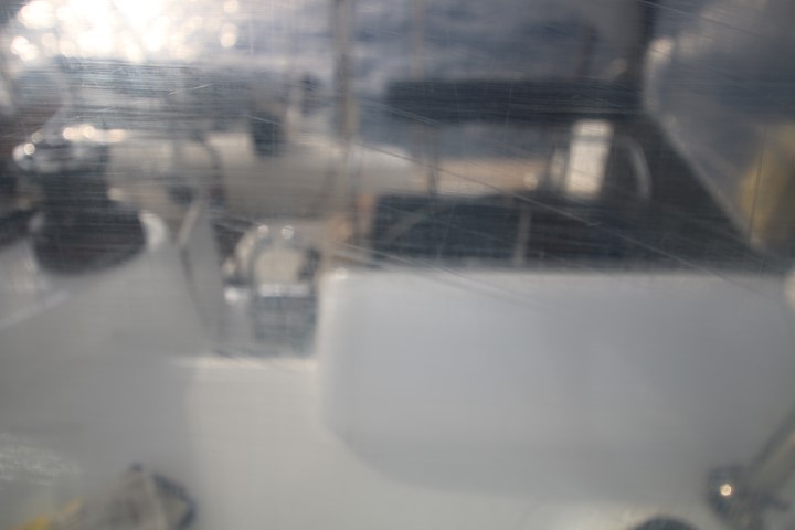 RE hat eine Macralon-Frontscheibe im Steuerstand. Das ist genau das Material, aus dem die Fenster sind. Nur als Frontscheibe viel dünner, dass man sie (theoretisch) auch aufrollen könnte. Vorteil zu den herkömmlichen Plastik-“Scheiben“ in Persenningen: Da kann man ordentlich durch sehen. Ist ja das Fenster-Material. Nachteil: Das verkratzt. Ich hatte einmal aus Versehen das Fenster bei der Pantry mit einem Kratzeschwämmchen gesäubert. Und natürlich ordentlich verkratzt. (Der Dreck war ab, …) Das hat Michèle nie entdeckt. Da habe ich nämlich Acryl-Polish getestet: Und es funktioniert wirklich. Michèle hat es ja nie bemerkt…