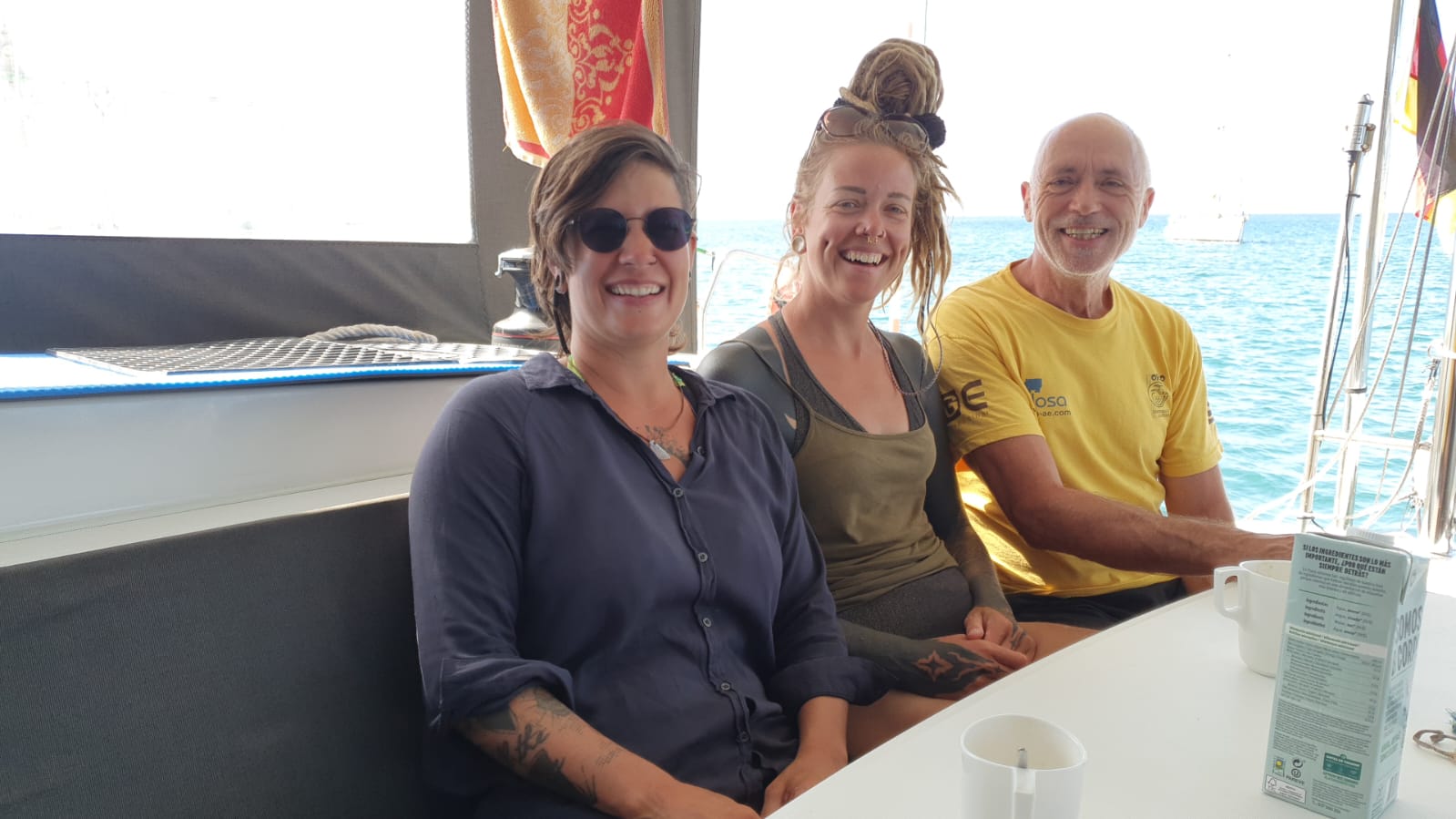 Eigentlich hätte ich als Überschrift wohl wieder „Nichtstun“ wählen sollen. Also muss ich mir mal ein anderes Wort ausdenken. Highlight des Tages ist der Besuch von der Crew der MOHEA, Anja und Eva. Zwei junge schweizer Frauen, die sich auf den Kanaren ein Boot gekauft haben. Und nun ihren ersten Schlag hinter sich gebracht haben. Und dann kommt es: Auch sie kennen Johanna. Waren in La Gomera. Wieder mal schließen sich Kreise…. Für Johanna hat sich Anja sogar eine Tätowier-Grundausrüstung an Bord geholt. Sie hatte ein entsprechendes Studio nach ihrem Wirtschaftsstudium aufgemacht. Und nach 10 Jahren Arbeit haben die beiden überlegt, dass Arbeit nicht das ganze Leben sein soll. Und sind los gezogen…. Tolle Menschen trifft man!
