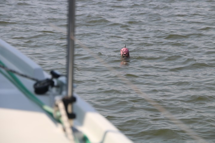 Alles zusammen ein herrlich friedlicher Segeltag. Nur: Allein muss man ständig aufpassen, wenn möglich den Krabben-Korb-Bojen ausweichen, keine Seezeichen überfahren, die Untiefen umfahren und die Segel nachstellen. So war es doch auch anstrengend, aber die Temperaturen waren sehr erträglich. Doch ein Anker-Bier hab ich mir verdient – findet zumindest der Skipper und gibt einen aus für die ganze Crew!