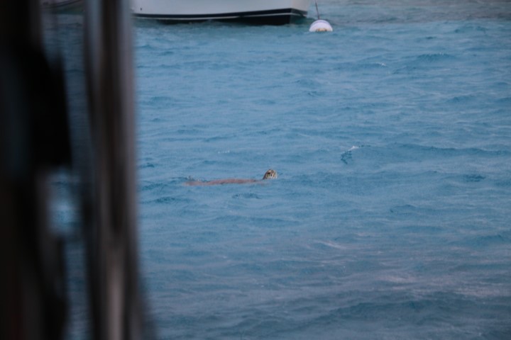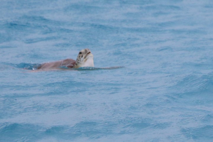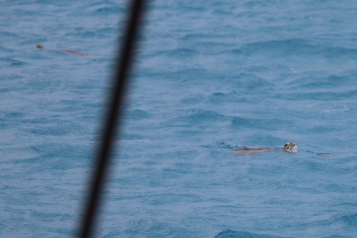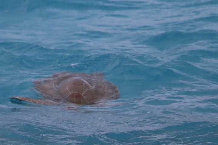 Und dann kommt der Aufreger des Tages: Zwei Schildkröten weiden wohl das Seegras-Feld unter uns ab. Immer wieder tauchen sie auf, holen dreimal Luft und sind dann wieder für Minuten unten. Michèle flimt, ich mache Foto-Jagd.