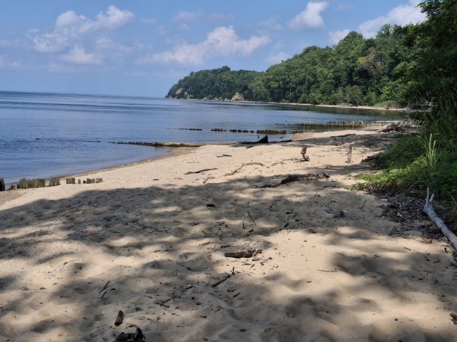 Für das Außengelände läuft zwar der Audio-Guide, aber nicht die Klimaanlage… Anschließend dürfen wir noch runter zur Beach fahren – da ist eine – leider geschlossene – Mühle und der „herrliche“ Ausblick auf den Potomac zu bewundern. (Gut – sind wir ja schon mehrfach lang gefahren. Da reißt es uns nicht so vom Hocker.)