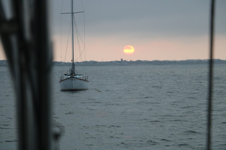 Ne Stunde später erscheint dann die VITAMIN SEA. Die haben heute einen enormen Schlag gemacht und sind von Marthas Vinyard in einem Rutsch hier her gekommen. Klar, dass da (endlich mal wieder) einen Sundownder auf RE gibt. Und viel zu erzählen, haben wir uns doch das letzte Mal in Hamburg / Wedel kurz vor Ostern gesehen….
