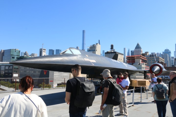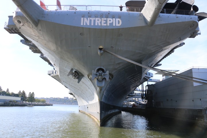Von der Grand Central Station geht es zu Fuß zum Intrepid-Museum. Michèle hat begeistert zugestimmt, dann aber doch die Lust verloren. Es ist ein (alter, im II. WK gebauter) Flugzeugträger, die Intrepid. Hat einiges mitgemacht. Und ist nur zu einer Mischung aus Schiffs- und Flugzeugmuseum mutiert. Fast alle gängigen Flugzeugtypen der Navy (und auch Airforce) sind ausgestellt. Und eine britische Concorde, heute leider nur von außen zu besichtigen. Und die „Enterprise“, das erste SpaceShuttle. Das – wusste ich auch nicht – nie im Orbit war.