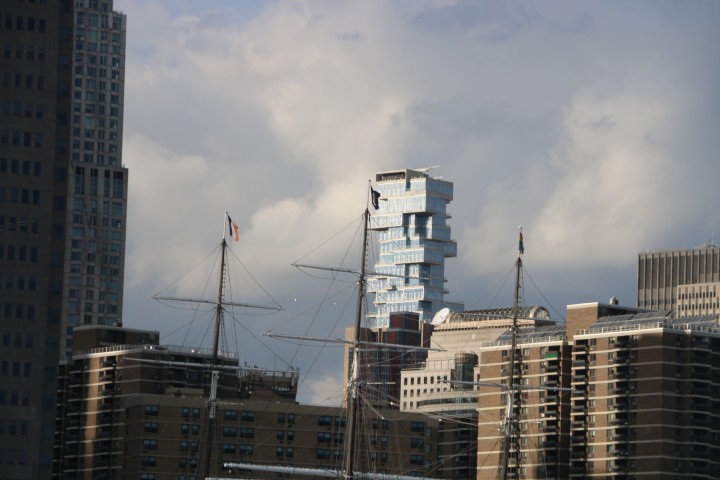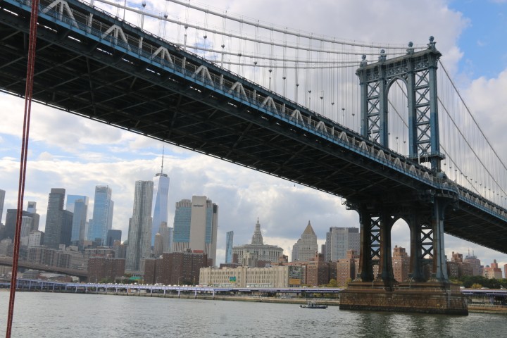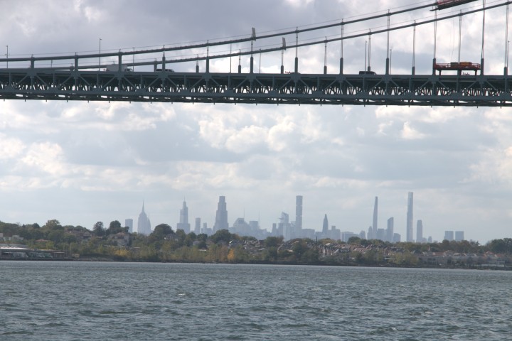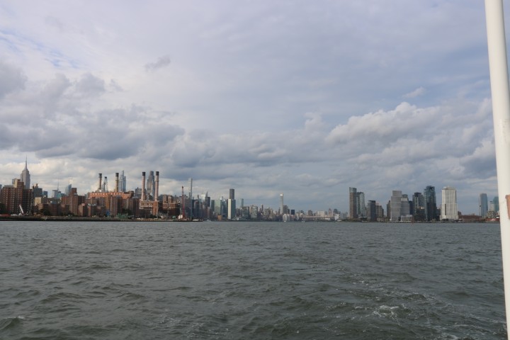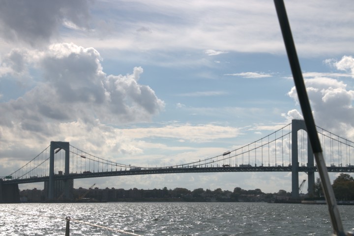 Die letzten Brücken haken wir schon im Angesicht von Madame Liberty ab. Dann ist die Brooklyn Bridge über uns und wir im „dichten“ Verkehrsgewühl des Hudson Rivers. Wer in Hamburg groß geworden ist, dem ist das in NY ziemlich leer. Doch hier sind wir nun auf dem Kreuzungspunkt, über den alle Fähren fahren. Und so sind wir umzingelt. Aber da die so viel schneller sind als wir, können wir sowieso nichts machen und fahren stumpf vor uns hin. Die umkreisen uns…