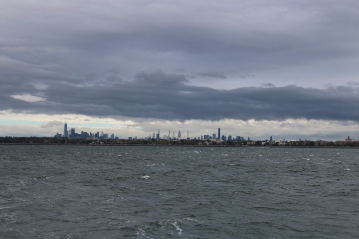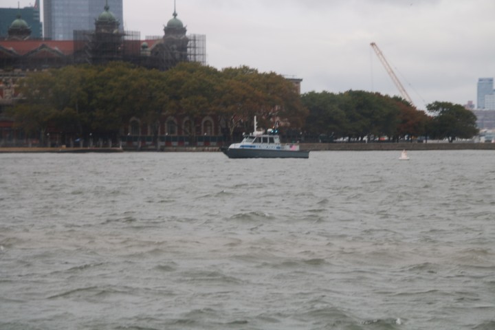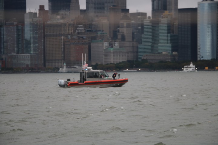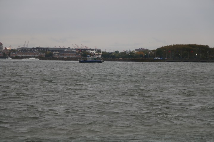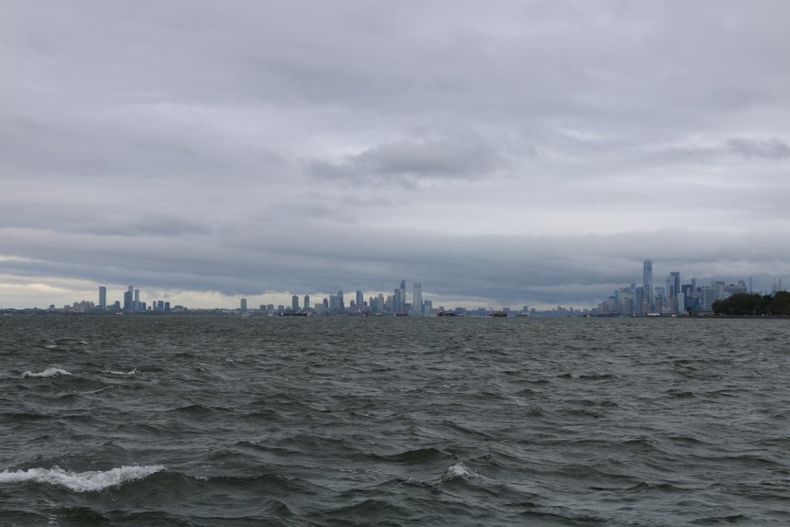 NY weint! RE will abfahren. Und es regnet Bindfäden – gut, das war vorhergesagt, aber trotzdem nicht lustig! Doch zunächst verschieben wir die Abfahrt nicht nur wegen des Regens! Wir sind umzingelt! 5 oder 6 Polizeiboote liegen um uns herum. Keins traut sich näher. Ob Trump gerade die Freiheitsstatue besucht? Nun – da hätten sie uns bestimmt weg gejagt. Also – zweitrangig.