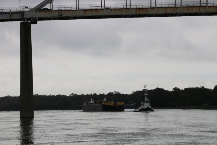 Die „kritische“ Brücke, die wir nicht passieren können, wenn sie geschlossen hat, ist offen. Der Wind weht schwach von hinten, der Strom schiebt uns kräftig. Mit Sonne wäre es ein 1a-Tag!