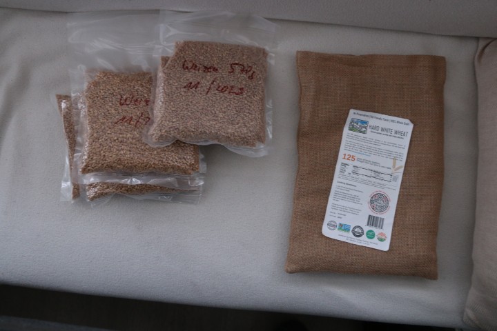 Dann geht es weiter an den Schreibtisch. Am Ende dann ein wenig „vernünftige“ Arbeit: Die Getreidekörner müssen „bootsfest“ gemacht werden. Weizen und Dinkel wurden in netten Jutesäckchen geliefert. Schön – aber nichts an Bord. Die müssen umgefüllt und vakuumiert werden.