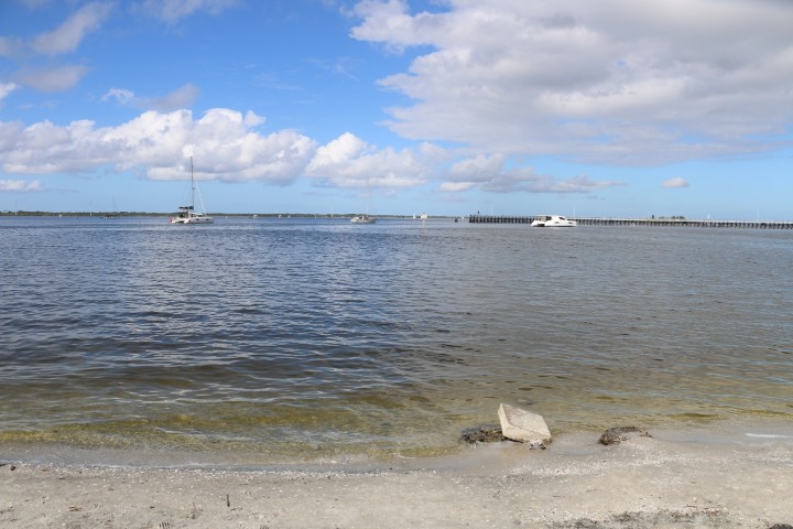 Ok – noch ein kleiner Landgang: Am Ende ist der dann über 13 Kilometer und mit 2 Stopps bald 4 Stunden lang. Wir bewundern die Kreuzfahrer - bis zu 10.000 Menschen auf einem Schiff. Hurra. Und die SpaceX Raketen Unterstufen. Also - eine. Die steht gerade vom letzten Start. Dann sind wir an der Beach. Laufen einen kleine Teil nach Süden und schlagen uns dann wieder heimwärts durch.