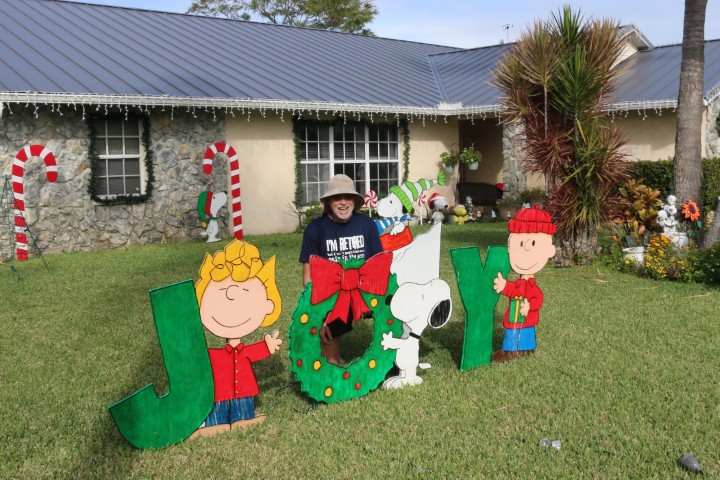 Halloween hat ausgedient. Nun ist Christmas - Schmuck in den Gärten angesagt. Einer hat es mir dann besonders angetan: Die Snoopy-Family macht hier Weihnachten!