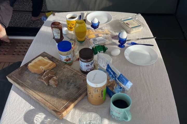 Der Tag beginnt ruhig – fast. Alisha hat Delfine gesehen. Doch immer, wenn sie die Position beschreibt, sehe ich: Nichts! So gehen wir an das erste Tagewerk: Großes Adventsfrühstück mit Ei und allem Drum und Dran. Advent ist hier in Amerika nicht so eine Sache wie bei uns. Aber Alisha ist für ein gutes Frühstück auch bereit, „Happy Advent“ zu lernen.