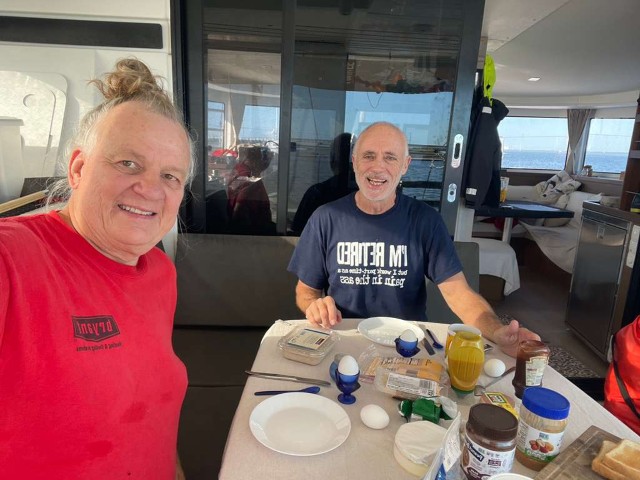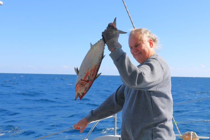 On November 22, 2025 at 10 am we said our goodbyes to Brittany Bowman at Coles Point, Brittany took videos as we sailed out of the marina, she also kept in touch with us as we progressed down the coast. She is awesome that way. So glad Michèle remined me to pack warm clothes. The first couple days were so cold, especially at night. I remember Chrischan coming off watch I was sitting in the saloon with two jackets and a blanket wrapped around me, he laughed and said you must be cold.