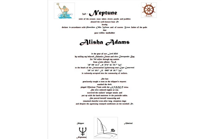 On November 17, 2025, I was asked to crew on sailing vessel RE. I immediately accepted as this would be my first ocean passage. On November 21st I met Chrischan at Richmond international airport, Chrischan returned his rental car. We were off to Coles Point to begin on getting acquainted with RE. This entailed all safety, systems and where everything is in RE.