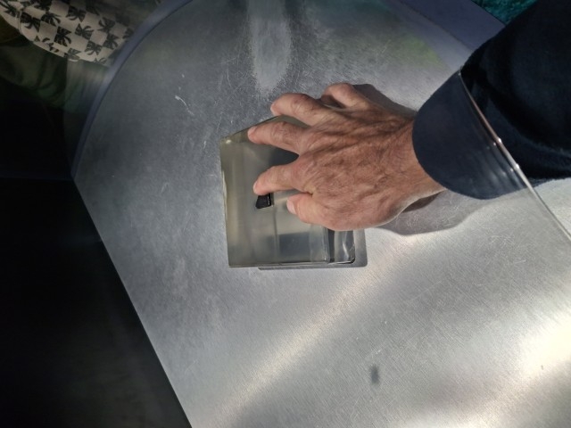 Und dann gönne ich es mir – da heute keine Ansteh-Zeit ist: Ich berühre ein Stück Mond! Ganz glatt ist er inzwischen – wer weiß, wie viele Millionen Male schon ein Menschenfinger über ihn gefahren ist? Ich schätze einfach mal ab und komme auf 18 Millionen mal.