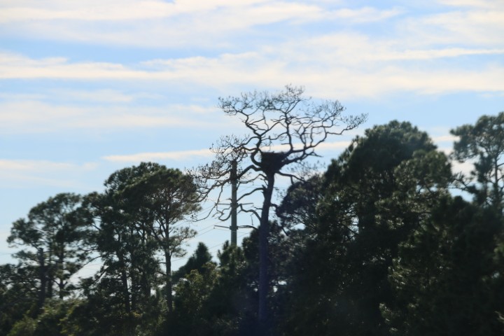 Auf der Rückfahrt von dem Apollo-Komplex fahren wir an einem riesigen Adlernest vorbei. Ja - das gesamte KSC liegt in einem großen Naturschutz-Gebiet. (Auch: Siehe Foto!)
