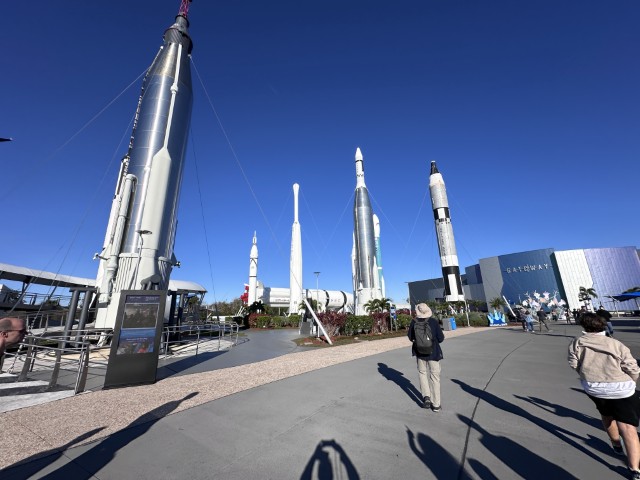 Denn um 8 Uhr bin ich bei der JOBBER. Die Crew abholen. Wir fahren ins KSC - Kennedy Space Center. Raketen gucken. Ich erwarte, dass ich heute nach dem Besuch am 03.12. die Hälfte der Zeit auf bekannten Pfaden wandle. Doch es kommt anders. Wir müssen kurz anstehen, denn wir sind ein paar Minuten vor 9 da. Obwohl der Uber-Fahrer erhebliche Probleme hatte, uns auf zu nehmen. Er wollte nicht so fahren, wie Maps ihm das vorschlug und wunderte sich dann, dass er (mehrfach) woanders landete. Doch nach 3 (!) Anrufen bei Thomas und ca. 10 km Umweg war er dann endlich da. Gut – wir waren ihm nun schon zu Fuß einen guten Kilometer entgegen gekommen.