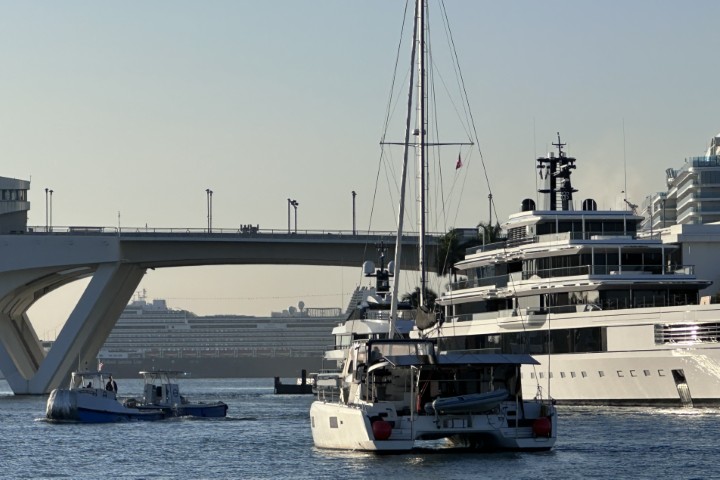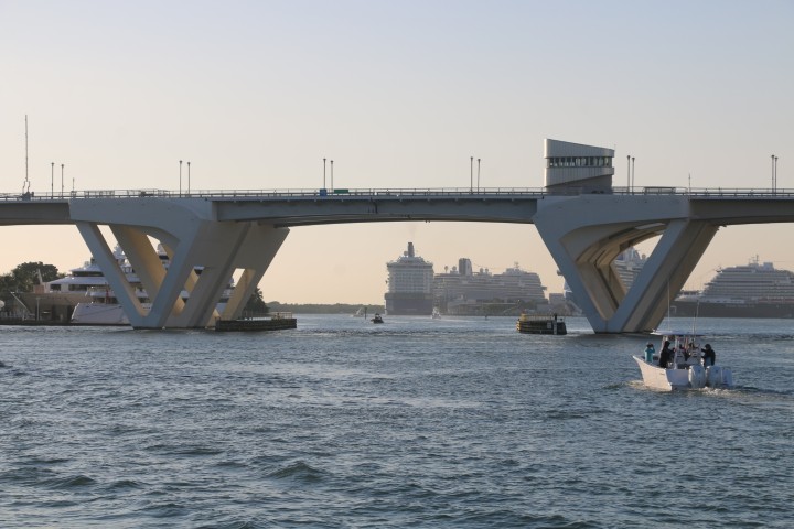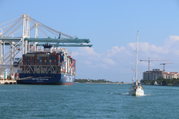 Dann kommt die Hafeneinfahrt Miami (MIA). Auch hier erwische wir ein ruhiges Intervall. Am Ende bietet das zwei interessante Stellen: Eine Barre mit Wassertiefen um 1,8 m. JOBBER geht lieber „außen“ rum, ich biete zwar an, die wirkliche Wassertiefe anzusagen, aber: Sicher ist sicher….