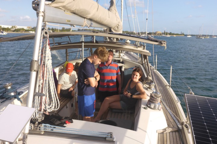 Und um 15:30 Uhr haben wir Termin auf der JOBBER: Meine Beiden wollen mal sehen, wie ein Einrumpf innen aussieht. Nun – klar, dass wir nicht um 16 Uhr losfahren. Wir sitzen noch eine Weile zusammen. Und ich springe ins Wasser, Thomas möchte die Opferanode an seinem Propeller kontrolliert haben: Da ist KEINE! Blitzschnell hat er eine Ersatz-Anode und eine Schraube zur Hand. Klar, dass ich die schnell montiere! Und einen glücklich machen! Frohe Weihnachten! So verabschieden wir uns. Hoffentlich finden wir auf den Bahamas zusammen. Es ist wirklich nett mit der JOBBER-Crew!