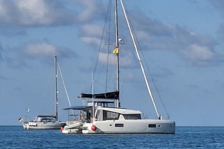 Also hin! Nö – hier kann er uns nicht einklarieren. Das macht man in der Marina. Ja – wir liegen aber hier vor Anker…. Nun gut – das würde aber 250 $ pro Boot extra kosten. Es sei ja gefährlich, da zu uns raus zu kommen…. Nachtigall, ich hör dir trapsen! Schmiergeld wollen die hier also doch und auch. Entgegen der Berichte auf NFL und Navily. Das wollen wir nicht. Also zuppeln wir wieder zurück.